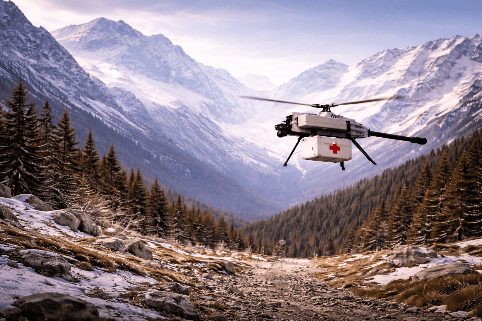 Transports up to 15 kg of medical supplies in thermally controlled boxes. Capable of landing in tight 2.5 – 4 m² areas, for maximum flexibility.